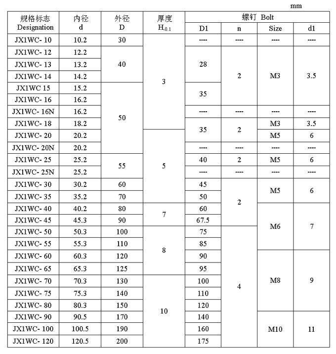 JXW 系列止推墊片標(biāo)準(zhǔn)尺寸