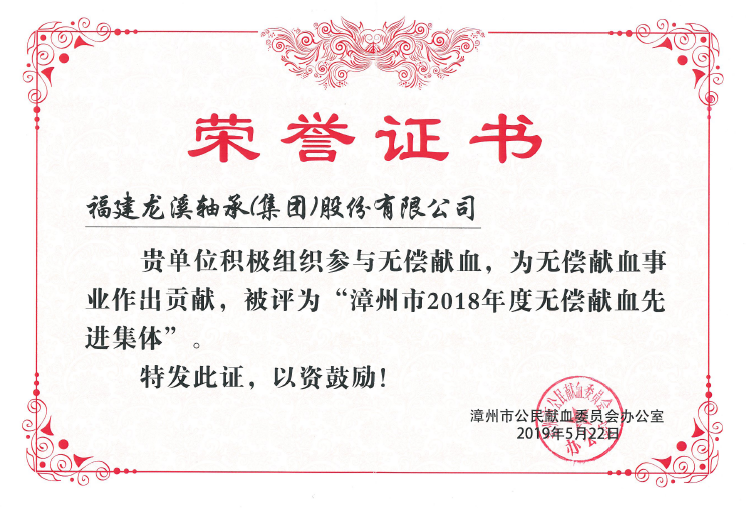 公司榮獲“漳州市2018年度無償獻(xiàn)血先進(jìn)集體”稱號(hào)