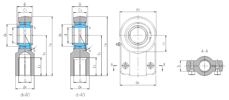 產(chǎn)品特點:帶鎖口桿端關節(jié)軸承由桿端體和向心關節(jié)軸承GEEW…ES組裝而成,用擋圈固定,d<63,桿端體材料是碳鋼,63≤d≤80,桿端體材料是碳鋼或球墨鑄鐵,d>80,桿端體材料是球墨鑄鐵,桿端體的內(nèi)螺紋帶有鎖口,配有螺釘緊固;可通過油杯潤滑。