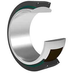產(chǎn)品特點:外圈有一道軸向縫,材料為不銹鋼,淬火,球面粘貼PTFE編織物;內(nèi)圈材料為不銹鋼,淬火。型號后置代號為XT,表示外圈沿軸向剖分成兩半,用鎖圈固定。