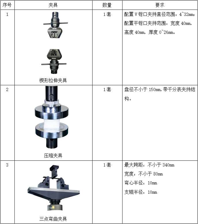 (3) 設(shè)備能夠按照標(biāo)準(zhǔn) GB/T 228.1-2021、ASTM E8/E8M-2016a、GB/T 7314-2010、GB/T 232-2010開(kāi)展拉伸試驗(yàn)、壓縮試驗(yàn)、彎曲試驗(yàn),且有相關(guān)內(nèi)置程序,并按標(biāo)準(zhǔn)要求配齊相應(yīng)的夾持工裝。
