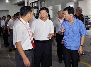 2017年5月9日,田力普(原國家知識產權司黨組書記、局長,左四)、李川(原福建省副省長,左一)到龍軸調研