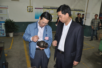 2017年11月6日,陳文釗(原福建省機械工業廳廳長,左二),夏玉瑚(原福建省機械工業廳廳長,右三),陳慶友(現任福建省機械工業聯合會會長,右一)到龍軸調研
