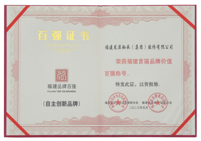 5月7日,福建首屆品牌價(jià)值百?gòu)?qiáng)榜單發(fā)布會(huì)在福建省寧德市舉行,發(fā)布了100個(gè)品牌企業(yè)和20個(gè)區(qū)域品牌作為福建首屆品牌價(jià)值百?gòu)?qiáng)榜單,龍軸集團(tuán)的品牌強(qiáng)度位列福建品牌價(jià)值百?gòu)?qiáng)第4,品牌價(jià)值在自主創(chuàng)新品牌中位居第5。