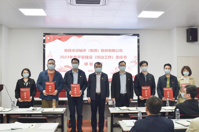 2023年3月16日,龍軸集團(tuán)舉行平安建設(shè)(綜治工作)責(zé)任書簽訂頒發(fā)儀式。公司黨委書記、董事長陳晉輝,黨委副書記劉明福分別與在漳權(quán)屬企業(yè)和各部門、車間負(fù)責(zé)人簽訂責(zé)任書,陳晉輝和公司黨委副書記、總經(jīng)理陳志雄一同頒發(fā)責(zé)任書。