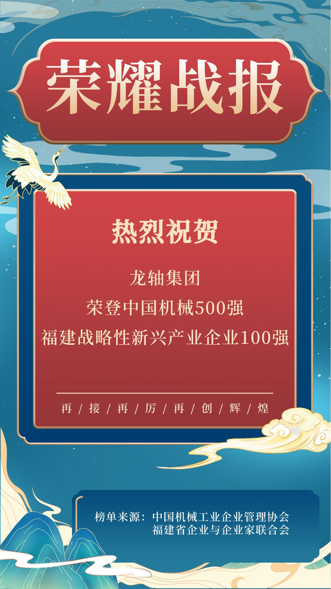 上榜中國機(jī)械500強(qiáng)、福建戰(zhàn)略性新興產(chǎn)業(yè)企業(yè)100強(qiáng)