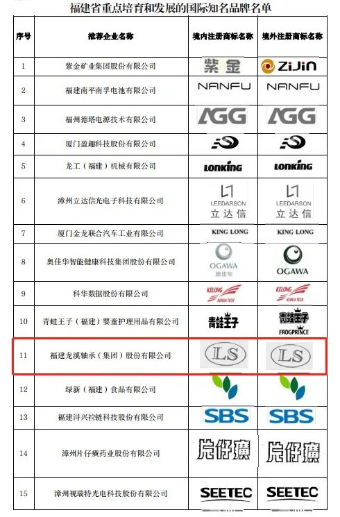 入選福建省重點(diǎn)培育和發(fā)展的國際知名品牌