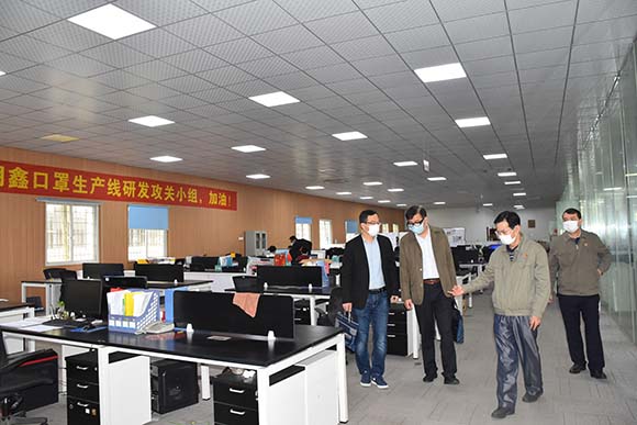 曾凡沛一行先后檢查了員工進廠區體溫檢測、口罩佩戴、食堂管理、防控宣傳、安全生產等情況,并調研了與明鑫公司聯合研發全自動醫用口罩生產線的進展情況。曾凡沛強調,疫情就是命令,防控就是責任,我們要堅持以習近平總書記關于疫情防控的重要指示精神為指引,積極貫徹中央、省、市相關通知精神,切實加強復工復產后新型冠狀病毒感染肺炎疫情一級應急響應期間返崗人員的健康管理工作,堅定必勝信心,齊心協力打贏疫情防控阻擊戰。