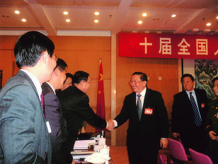 2006年3月十屆全國人大四次會議期間,羅干與陳董事長握手