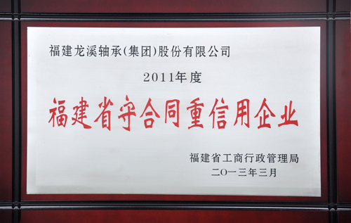 近日,公司在福建省工商局2011年度福建省守合同重信用企業創建活動中獲得“福建省守合同重信用企業”榮譽稱號?! ?/FONT>