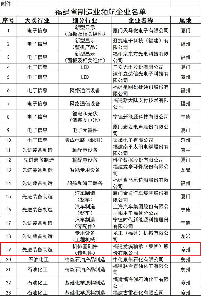 日前,福建省工信廳公布福建省制造業領航企業名單,龍軸集團光榮入選。