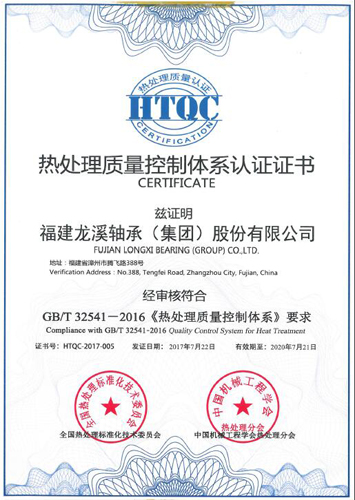 ????熱處理工序是軸承產品內在質量最為核心的特殊控制過程,但我國熱處理行業長期以來缺乏一套針對熱處理工序的規范化質量管理體系。2016年國家為全面規范產品熱處理過程運作,提高產品熱處理質量,保證熱處理過程控制水平,參照國外先進的CQI-9熱處理標準要素,并涵蓋ISO 9000、ISO 16000及AMS 2750E條款,發布實施了我國首個國家熱處理質量控制體系標準GB/T 32541-2016。2016年公司率先推進貫標工作,積極學習貫徹新標準,全面帶動企業熱處理質量管理水平的提升,推動企業的轉型升級,并于今年通過審查并獲頒熱處理質量控制體系認證證書。此次全國共有5家公司獲此殊榮,其中4家屬專業熱處理廠,公司是唯一一家獲此殊榮的軸承企業。
