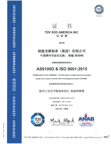 ????依據AS 9100標準通過第三方質量體系認證是作為航空航天供方市場準入的先決條件之一。自2016年3月15日新版AS 9100D發布以來,目前全球共有254家通過新版認證,其中中國僅有5家,公司為首5家企業之一,且為當前國內唯一一家通過AS 9100D:2016第三方認證的軸承企業。