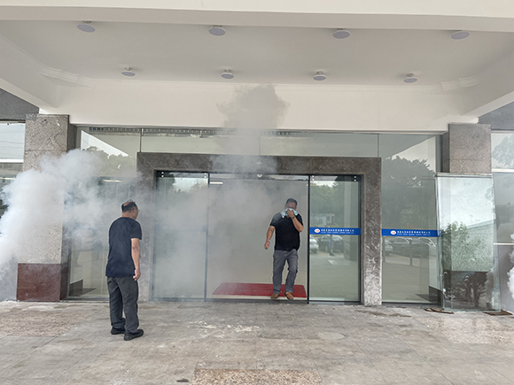 消防安全知識培訓結束后,公司在藍田三廠區綜合樓組織開展“滅火、應急疏散預案”演練。此次演練模擬藍田三廠區綜合樓一樓突發火情,濃煙觸發綜合樓消防報警系統,綜合樓各科室辦公人員聽到消防報警后,迅速開展疏散逃生,旨在提高廣大員工的火災逃生及滅火能力,增強廣大員工消防意識,同時驗證公司《滅火、應急疏散預案》的實際應急效果。