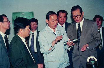 1996年3月18日,楊鏗(時(shí)任機(jī)電部副部長,右一)視察龍軸