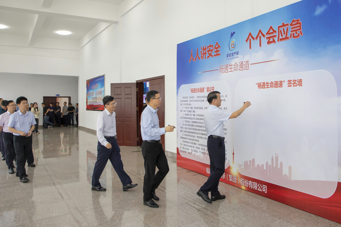 啟動(dòng)儀式開始前,首先舉行“暢通生命通道”倡議書簽名活動(dòng),集團(tuán)領(lǐng)導(dǎo)班子成員帶頭在“暢通生命通道”簽名墻上簽名,共計(jì)約200名與會(huì)人員參加簽名活動(dòng)。