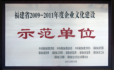 2012年9月28日,福建省委宣傳部召開(kāi)全省企業(yè)文化建設(shè)工作經(jīng)驗(yàn)交流電視電話會(huì)議,公司被授予“2009-2011年度福建省企業(yè)文化建設(shè)示范單位”,福建省委常委、宣傳部長(zhǎng)袁榮祥出席了福州主會(huì)場(chǎng)會(huì)議并發(fā)表講話,福建省政協(xié)副主席李川主持會(huì)議。