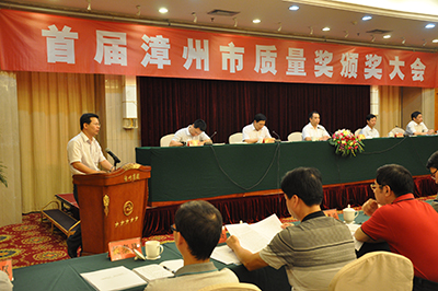 2012年9月28日,漳州市政府在漳州賓館隆重召開(kāi)首屆漳州市質(zhì)量獎(jiǎng)?lì)C獎(jiǎng)大會(huì),漳州市質(zhì)量獎(jiǎng)評(píng)審委員會(huì)委員單位、各縣(市、區(qū))政府、各開(kāi)發(fā)區(qū)分管領(lǐng)導(dǎo)、質(zhì)監(jiān)部門(mén)領(lǐng)導(dǎo)及列入《漳州市爭(zhēng)創(chuàng)省、市質(zhì)量獎(jiǎng)三年滾動(dòng)計(jì)劃》的企業(yè)代表100多人參加會(huì)議,副市長(zhǎng)洪仕建出席會(huì)議并發(fā)表講話,他充分肯定了漳州市質(zhì)量工作的顯著成效,并對(duì)全市質(zhì)量工作提出新要求。