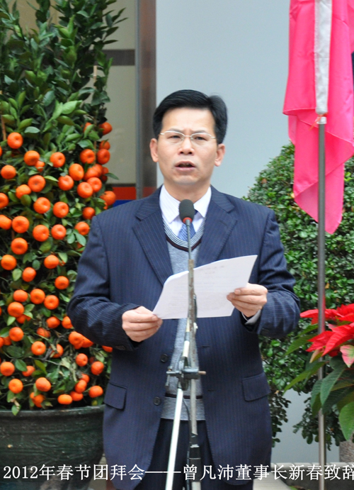 2012年1月21日(農(nóng)歷壬辰年十二月二十八)上午,公司在總部辦公樓前舉辦“2012年春節(jié)團拜會”,團拜會在公司黨委副書記張?zhí)┥闹鞒窒潞唵味f重的進行著,公司高管及2000多名在職、離退休員工參加了團拜會。會上,公司黨委書記、董事長曾凡沛代表公司黨委、總部發(fā)表了熱情洋溢的新春致辭,向全體員工表示節(jié)日問候和崇高敬意!員工代表何國輝也在會上做了誠摯質樸的發(fā)言。