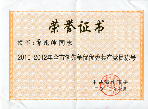 | 創(chuàng)先爭(zhēng)優(yōu)優(yōu)秀共產(chǎn)黨員(曾凡沛) | 漳州市委 | ||