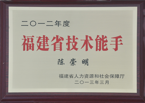 | 福建省技術(shù)能手(陳崇明) | 福建省人力資源和社會(huì)保障廳 | ||